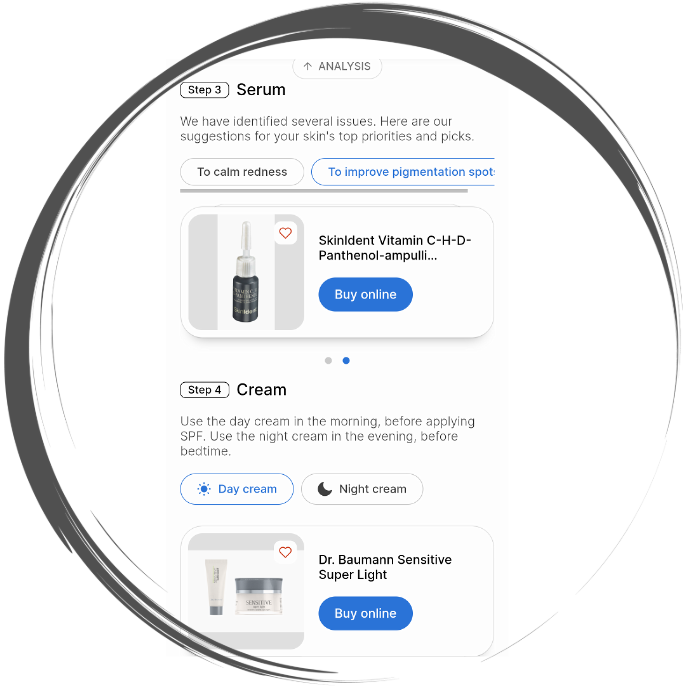 AI-ihoanalyysi perustuu puhelimella tai tietokoneella otettuun valokuvaan. Tekoäly analysoi kuvan tarkasti antaen asiakkaalle välittömät tulokset ja tuotesuositukset ostotilanteen yhteydessä.