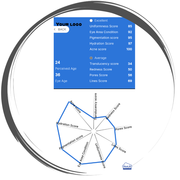 AI analysoi ja pisteyttää viisitoista eri ihon kuntoon ja kauneuteen vaikuttavaa parametria skaalalla nollasta sataan. Rypyt, punoitus, ihon kiinteys, hehku, akne, silmänympärykset muun muassa.